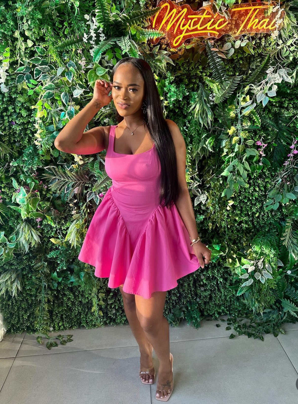 The perfect dress for those casual little outings! featuring a sexy scoop back, very lightweight, flowy, and dainty. Effortlessly combines elegance with your girly personality, pair her up with some heels or your favorite sandals and make it the cutest outfit!